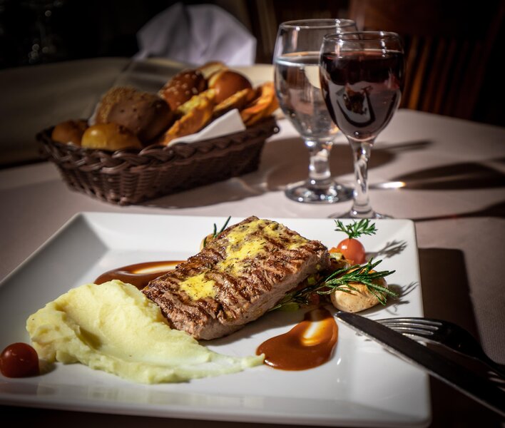 Frühstücksbuffet, mittags und abends kalt/warmes Buffet, Themenabende, Abendessen im À-la-carte-Restaurant (Reservierung erforderlich).