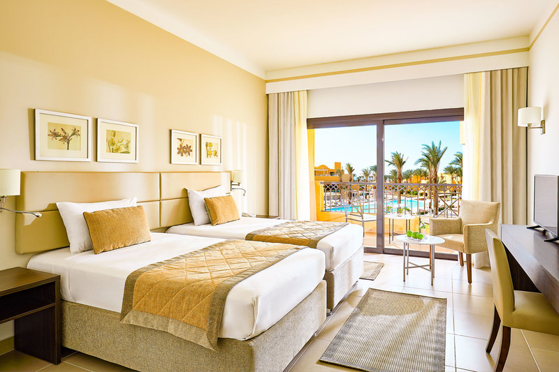 Superior-Zimmer (DSG, ca. 34 qm), Klimaanlage, kleiner Kühlschrank (gegen Gebühr), Kaffee-/Teezubereiter, TV, Telefon, Safe. Dusche, WC, Föhn. Balkon/Terrasse mit Gartenblick, wahlw. Poolblick (DSP) oder Meerblick (DSS). Max. 2E, zur Alleinnutzung buchbar (ESG/ESP/ESS)