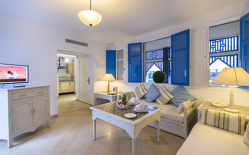 Das Hotel liegt inmitten der lebhaften „Medina Mediterranea“ von Hammamet-Yasmine. Zum privaten Sandstrand sind es ca. 300 m, ein direkter Zugang führt zu der Medina mit bunten Geschäften und Cafés. Die Entfernung zum Flughafen Monastir beträgt ca. 90 km.